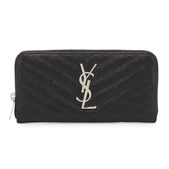 Saint Laurent pebbled calfskin wallet with matelasse stitching.