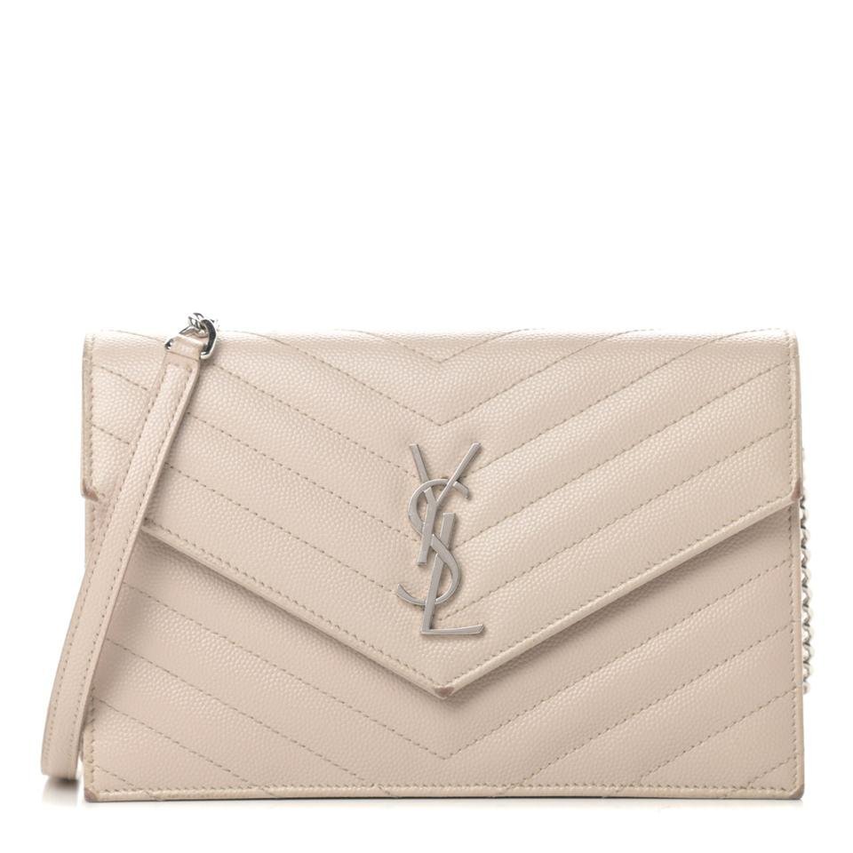 Saint Laurent Chain Wallet Monogram Envelope Grain De Poudre Matelasse Chevron Woc Nude Beige Leather Shoulder Bag