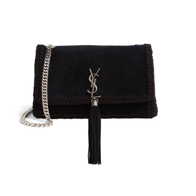 A monogrammed insignia makes an iconic mark on a pristine shoulder bag designed with a neatly structured silhouette outlined with whipstitched trim. A chain-link, pull-through strap provides convenient carrying options.
