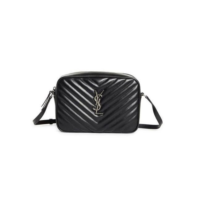 We guarantee this is an authentic SAINT LAURENT Calfskin Matelasse Monogram Lou Camera Bag Black or 100% of your money back. This chic shoulder bag is crafted of chevron-quilted calfskin leather in black. This crossbody features a strap and aged gold hardware. The top zipper opens to a compact black fabric interior with pockets.