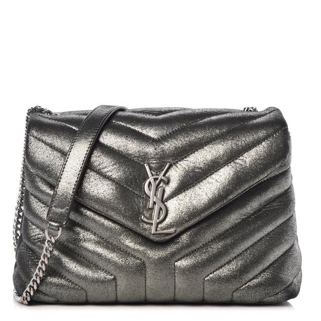 Saint Laurent Monogram Loulou Metallic Calfskin Monogram Small Chain Grey Leather Cross Body Bag