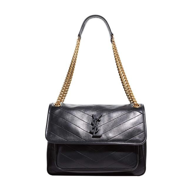 Saint Laurent Niki Medium Ysl Monogram Quilted Calf Flap Black Leather Shoulder Bag